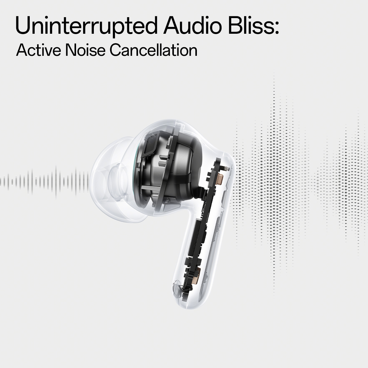 Hybrid Active Noise Cancellation (ANC) up to ~49 dB.